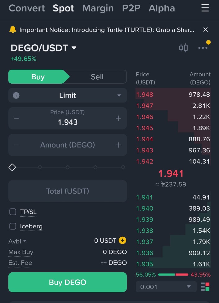 Friends, When I woke up today morning and checked the markets, the DEGO/USDT price on Binance's spot page was hovering around $1.80 to $1.90. It remained in this range for most of the day, although there were minor fluctuations. I noticed that the volume wasn't very impressive, but there was a consistency. It is not that there has been a sudden sharp fall or huge rise. Rather, the day was spent in a series of small transactions between buyers and sellers.